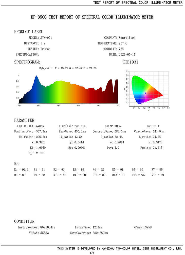 e. Color Rendering Index Ra, Ri(i=1~15)